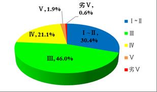 161个站点中有123个满足Ⅲ类水质标准,占76.4%。1个站点水质为劣Ⅴ类,占0.6%。。