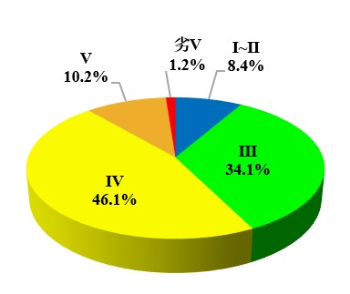 167个站点中有71个满足Ⅲ类水质标准,占42.5%。2个站点水质为劣Ⅴ类,占1.2%。