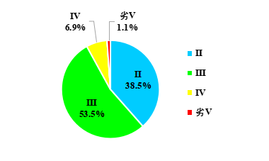 174个站点中有160个满足Ⅲ类水质标准,占92.0%,2个站点水质为劣Ⅴ类,占1.1%。