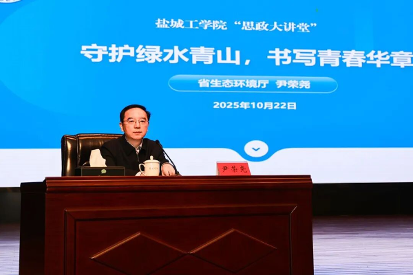 省生态环境厅副厅长尹荣尧为盐城工学院青年学子讲授思政课