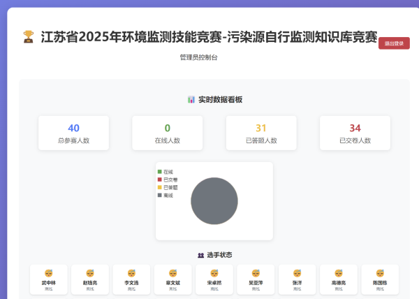 为保障赛事筹备顺利开展,省环境监测中心与南京工业大学环境科学与工程学院骨干党员成立临时党支部,将党员先锋本色融入每一项保障任务,高效响应、务实行动。为保障竞赛活动公平公正,承办方创新采用自研在线竞赛系统,实现从场地抽签、理论考试阅卷到AI知识库比拼全流程线上运行。裁判组严格依据《2025年度江苏省生态环境监测技能竞赛活动实施方案》,通过“评分—复核—监督”三重机制确保结果公信力,目前获奖名单已在省生态环境厅官网公示。
