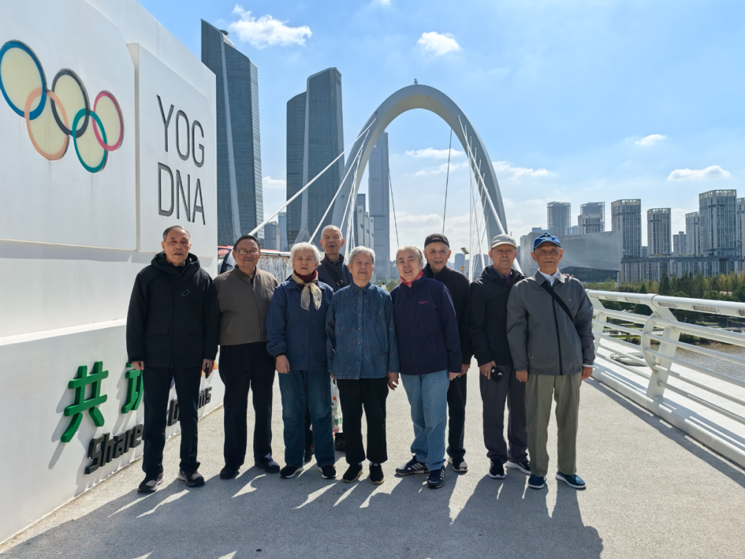 沿着江岸继续前行,老干部们步入充满现代活力的青奥森林公园。蜿蜒的滨江步道两旁,色彩斑斓的绿化景观与人性化的休闲设施相映成趣。公园内草木葱茏,四季花境次第开放,雨水花园等海绵设施巧妙融入景观,实现了生态功能与休憩空间的完美融合。几位正在健身的市民热情地向老干部们介绍,这片曾经厂房林立、码头遍布的工业岸线,如今已成为市民散步、骑行、健身的热门去处,更是亲子游玩、亲近自然的城市客厅。