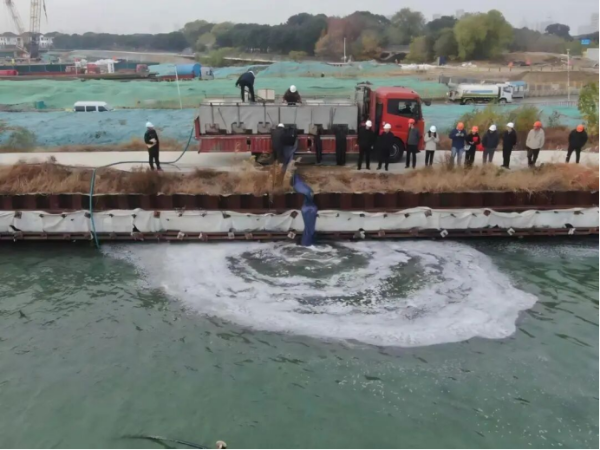 近日,在阳澄湖星济隧道相城区段工程现场,开展了一场以“修复水生生态,守护蓝色粮仓”为主题的渔业增殖放流活动,7100斤鱼苗被放入湖中,为阳澄湖水域生态注入新的生机。这是阳澄湖星济隧道项目为缓解工程建设对水域生态环境影响而采取的生态补偿措施。