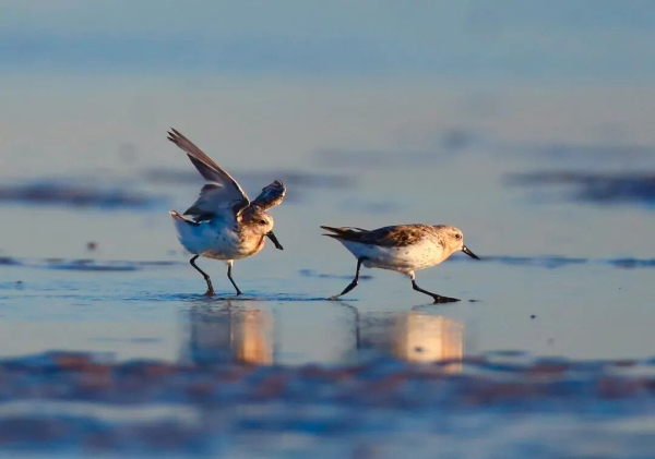 冬日清晨,盐城东台条子泥湿地晨雾如纱,成群的候鸟在潮间带翩跹起舞,“720”高潮位栖息地上,勺嘴鹬、小青脚鹬正低头觅食。这里曾是盐碱荒滩,如今却成了候鸟们的快乐家园。