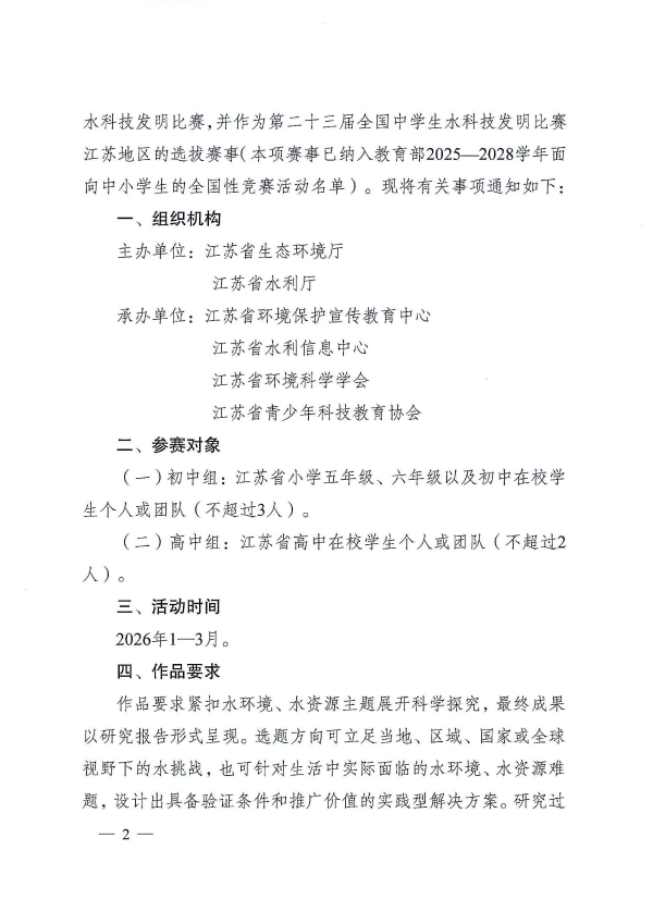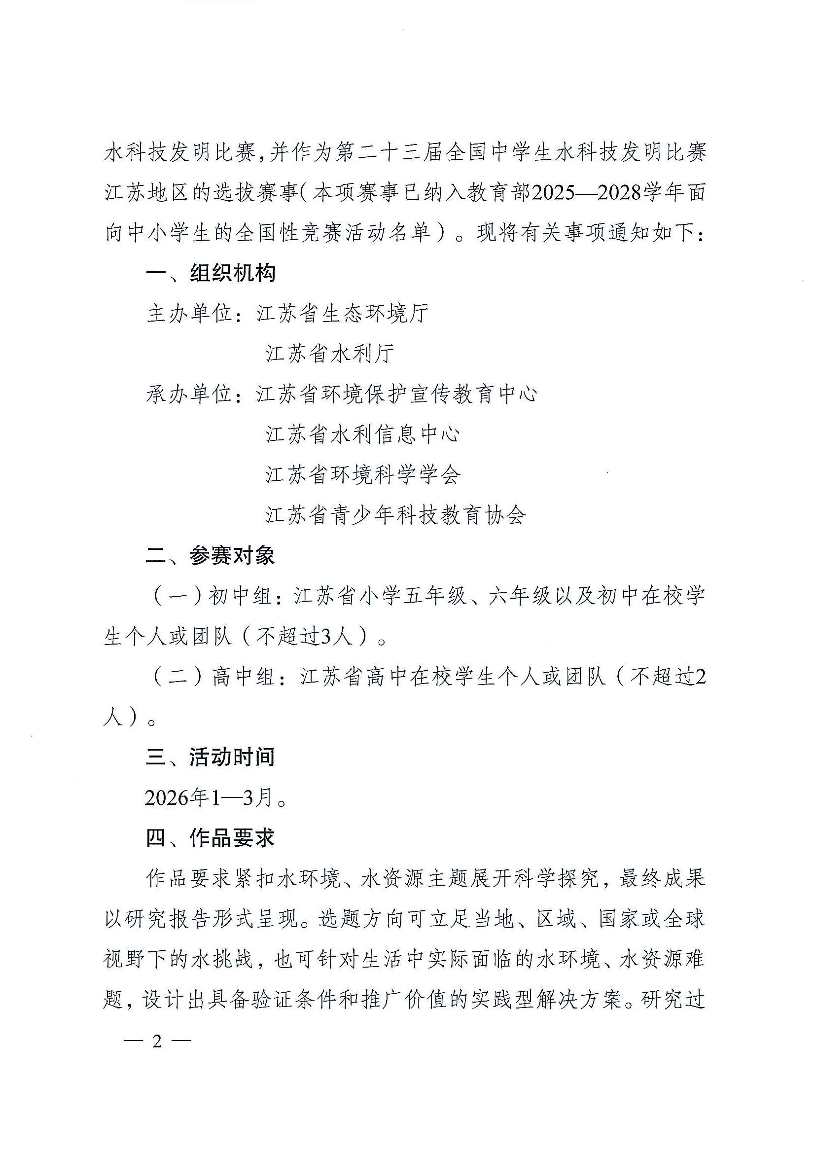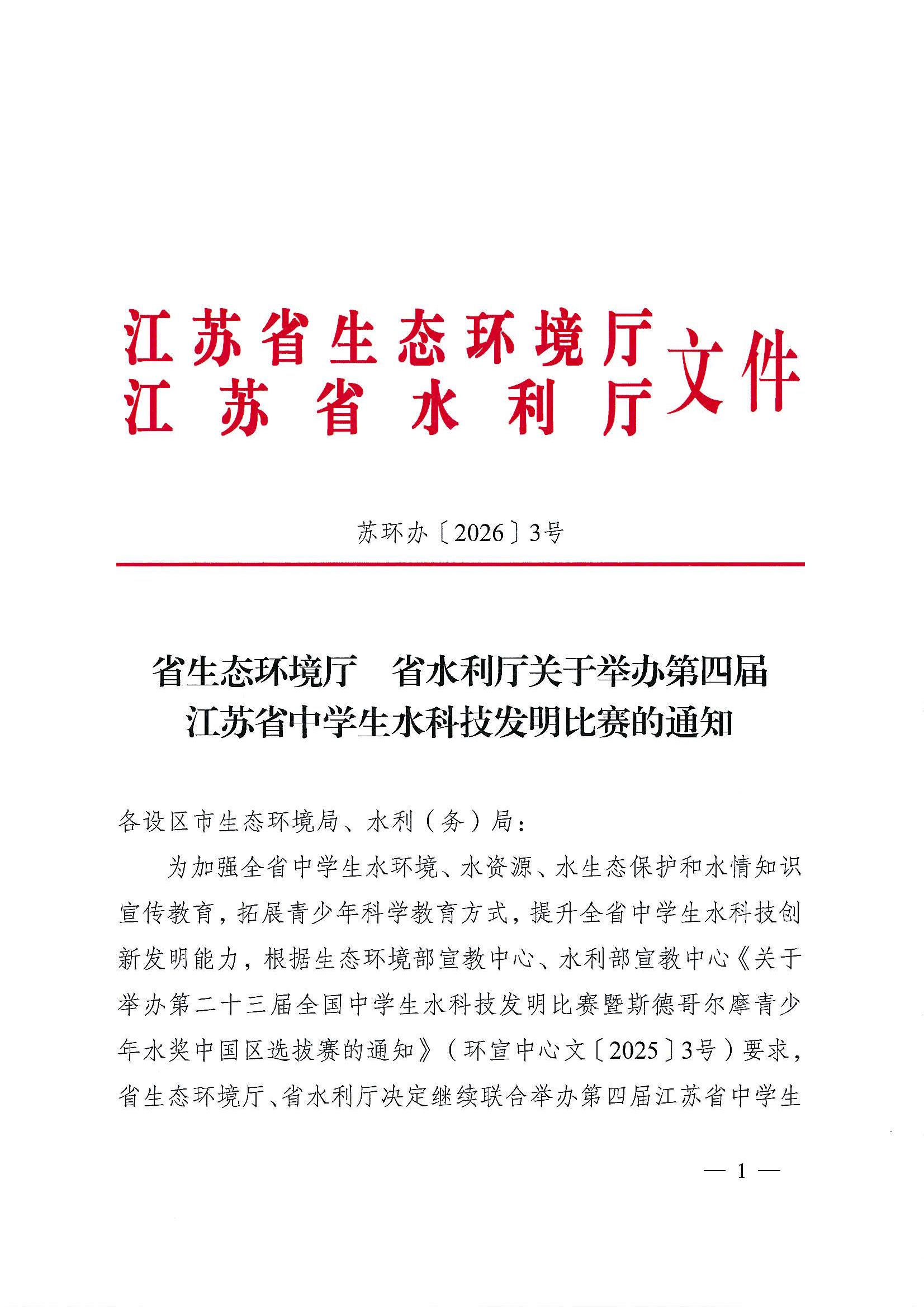省生态环境厅 省水利厅关于举办第四届江苏省中学生水科技发明比赛的通知