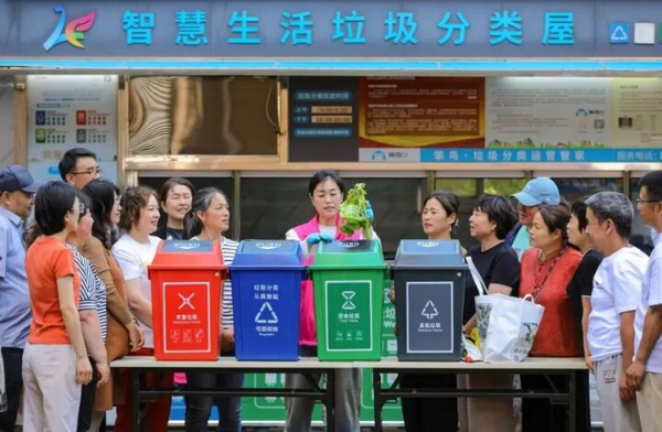 “‘合伙人’模式让生态保护从‘独角戏’变成‘大合唱’。”扬州万福商务区相关负责人深有感触。该商务区所辖广厦花园小区试点“垃圾分类积分换充电时长、抵物业费”机制,两个月内居民参与率提升至90%,正确投放率超70%,违规充电现象下降80%。“小区门口就有荣运达回收点,快递纸箱智能称重就能变现,既方便又环保,现在扔废品都成了‘赚福利’。”市民宋女士的体验很直观。