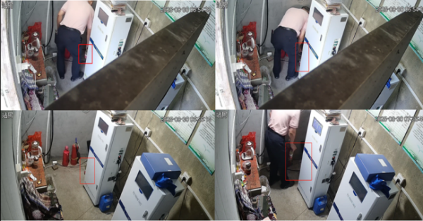 在保障太湖流域交叉执法工作中,“智慧视觉”上演了一场精准抓违的“实战戏”。通过分析某纺织企业的在线监测数据,发现其COD数值多次呈现锯齿状跃变,随即调取该企业视频信息,确认该企业每次数据跃变都有人员在监控站房、排放口(采样区)活动,清晰捕捉到工作人员替换监测样品、取走原始水样的画面。经过多天视频证据的固化,基本锁定该企业使用纯净水瓶替换真实样品的违法事实。