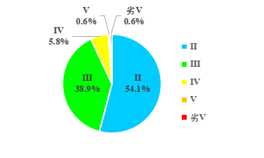157个站点中有146个满足Ⅲ类水质标准,占93.0%;1个站点水质劣于Ⅴ类,占0.6%。