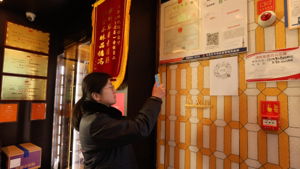 马年春节临近,南京街头年味渐浓。近日,南京市玄武生态环境综合行政执法局执法人员王娟和徐丽颖穿过南京1912街区熙攘的人群,走进一家正在备餐的餐厅。