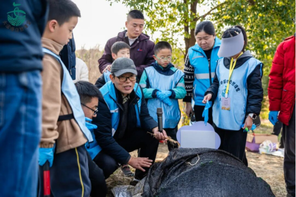 菌园里一派忙碌景象:孩子们又蹲回自己的菌园旁,有人拨开覆盖物检查菌丝有没有再蔓延一点,有人小心地喷水保湿;家长们也蹲在一旁,和孩子商量着何时再来看看。蘑菇还没长出来,但孩子们坚信脚下那张看不见的网真的在动,他们可以静待湿地深处的“开花结果”。