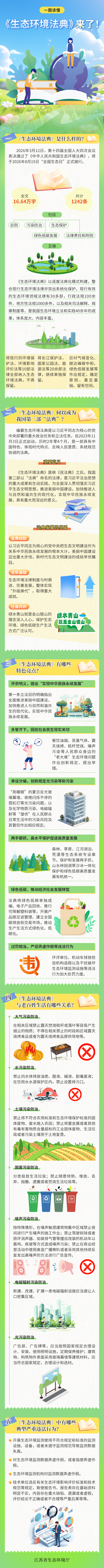 十四届全国人大四次会议表决通过了《中华人民共和国生态环境法典》,标志着我国生态环境法律体系从单行法时代迈入法典化时代。这部法律如何守护绿水青山?它到底有多重要?又将怎样影响我们的生活?即日起,推出“生态环境法典一图读懂”系列,一共6期,每期一张图,带你轻松读懂法典。欢迎点击收藏,转发给关心生态环保的朋友,一起学法、护法、守护家园!
