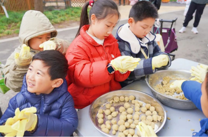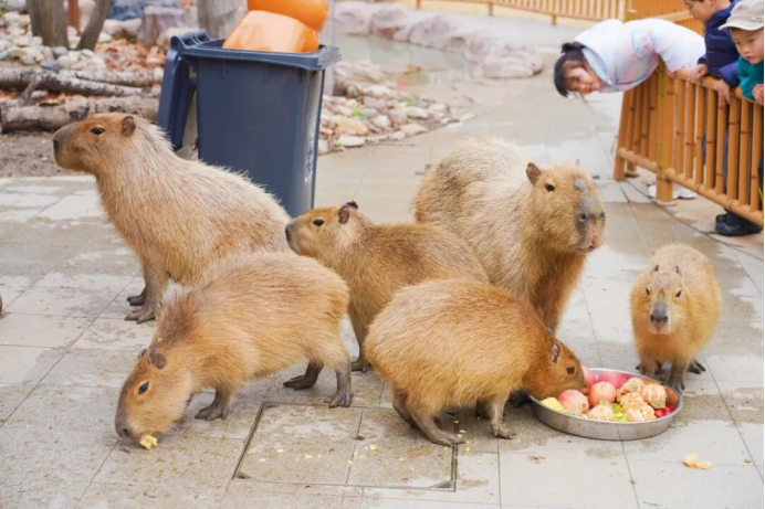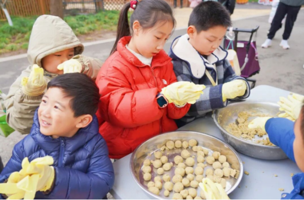 饲养员边指导大家制作元宵,边耐心讲解水豚的食性、生活习惯,让大家在动手过程中,不知不觉地增长了生态保护知识。揉面团、拌食材、搓元宵,每一个步骤都充满乐趣,当亲手制作的元宵送到“霸总”一家面前,看着它们慢悠悠享用美食的憨态,现场人都被治愈,欢声笑语不断回荡在展园上空。