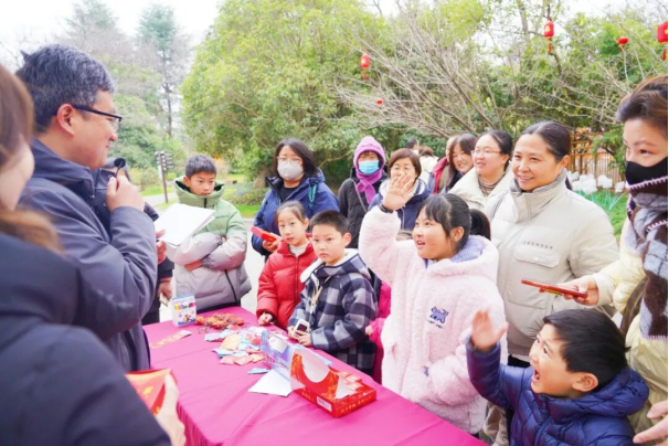 现场设置了灯谜墙,家长和孩子默契配合、共同闯关,现场不时传来阵阵欢呼声。答对谜题的游客脸上满是自豪,纷纷前往兑换区领取非遗茱萸香囊、萌趣动物主题元宵,把元宵的好运与生态保护的美好一同带回家。