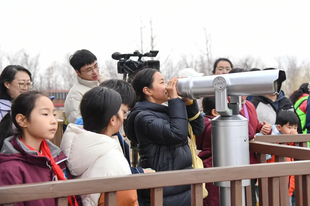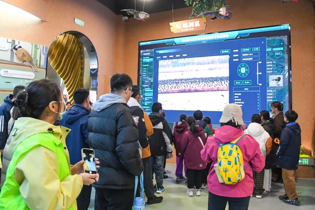 “截至现在,这个系统已经识别251种鸟啦,还有6种是国家二级保护动物呢!”跟随工作人员的讲解,孩子们踮起脚尖,盯着屏幕里翩跹的水鸟,眼神里满是好奇。孩子们在惊叹于科技力量的同时,也对生物多样性保护有了更深的理解。