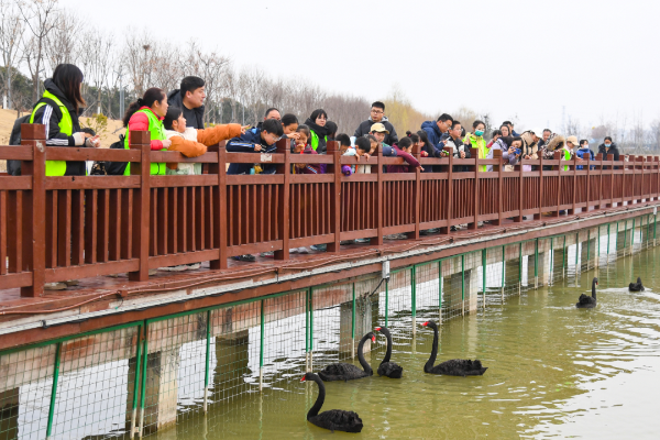 “嘘,小声点,别惊扰了黑天鹅一家。”志愿者轻声提醒着,孩子们立刻放慢脚步、压低声音,目光温柔地注视着湖面嬉戏的黑天鹅,有的拿出手机,小心翼翼地记录下这灵动的瞬间。志愿者向孩子们普及“文明观鸟”的知识,告诉大家“不投喂、不驱赶,就是对鸟类最好的守护”。孩子们认真聆听,纷纷点头,悄悄把这份约定记在心里。