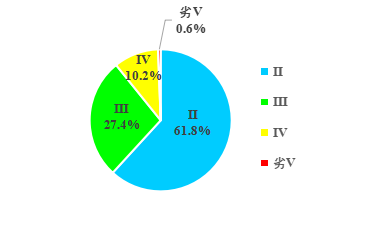 157个站点中有140个满足类水质标准,占89.2%1个站点水质劣于类,占0.6%