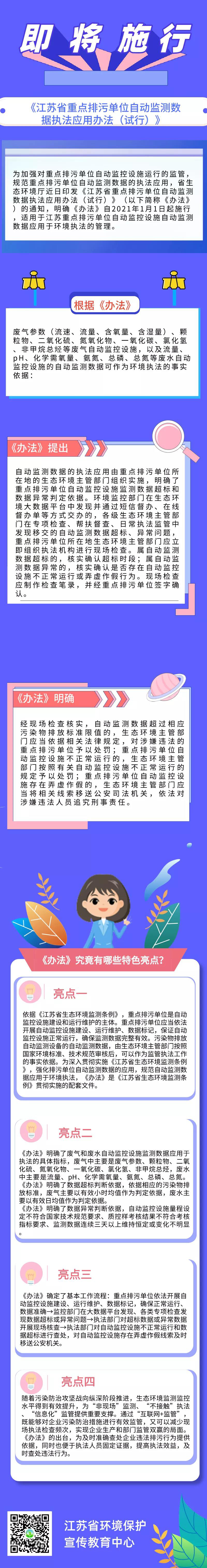 | 内容摘要:省生态环境厅关于印发《江苏省重点排污单位自动监测数据执法·应用办法(试行)的通知》.pdf江苏省重点排污单位自动监测数据执法应用办法--解读.docx | 时 效:有效 |