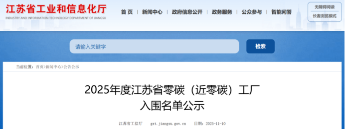 近日,省工业和信息化厅对首批30家江苏省零碳(近零碳)工厂名单进行公示,苏州市各有3家企业入围零碳工厂、近零碳工厂名单,入围数量均列全省第一。