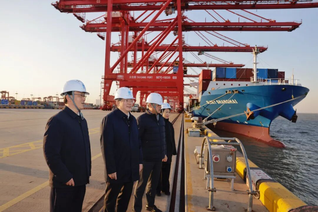 在苏州港太仓港区,范波实地察看码头建设,详细了解岸线利用、航线拓展等情况。苏报融媒记者 倪黎祥/摄