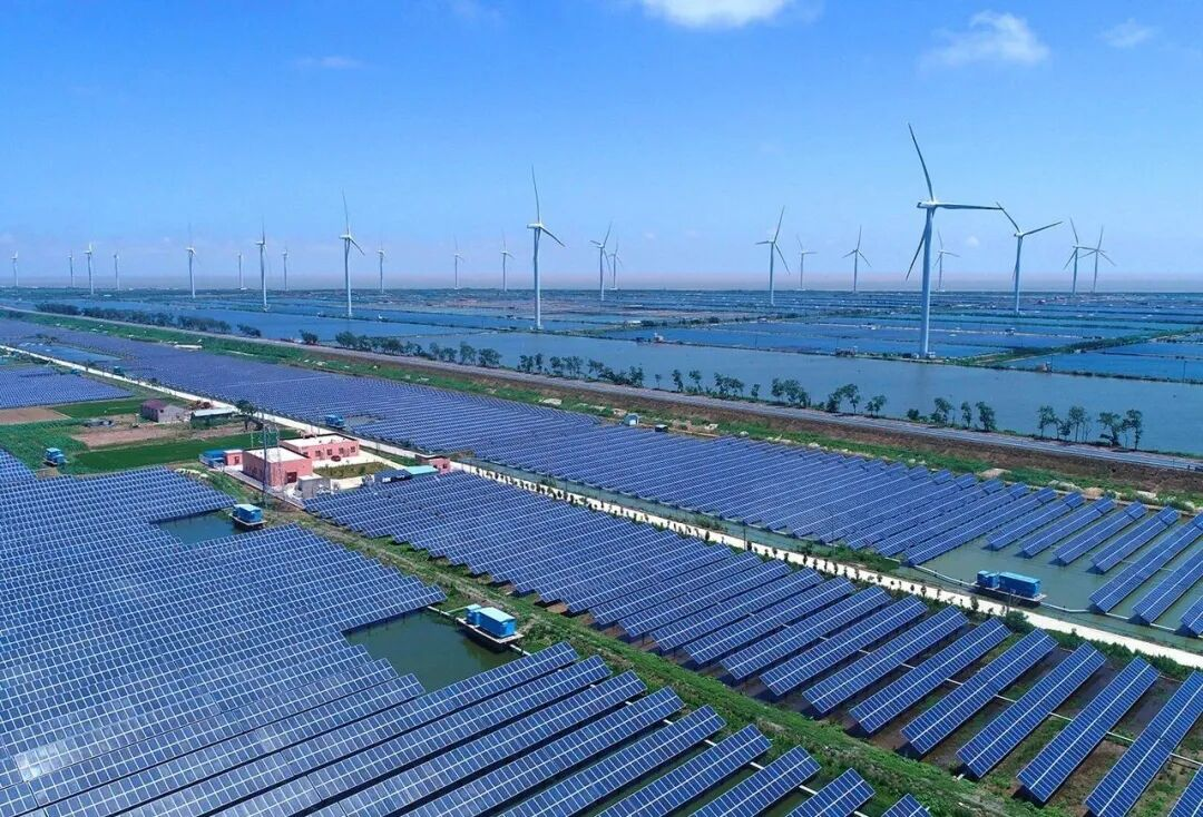 盐城市滨海县滨海港镇光伏和风力发电设施一隅