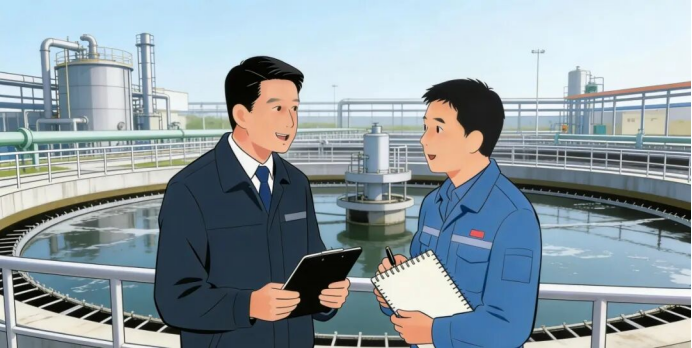 “今天我是来学习、来跟班的”。简短的开场白后,王盛迅速进入角色,跟着企业安全负责人来到了日常巡查的第一站:污水处理设施。眼前停用的设施锈迹斑斑,还残留着废水和底泥——这是一个在报表中不易被凸显,却在现场一目了然的隐患。王盛停下脚步,眉头紧锁:“设备停用不等于风险归零,残留废水与底泥须尽快合规处置,防止渗漏或二次污染。接管水质水量也需建立监测台账。”这番话并非来自文件的照本宣科,而是身份转换,让管理要求落地的具体动作。