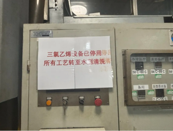 发现问题后,执法人员以“帮扶顾问”的工作方式与企业开展联合研判,在充分沟通与技术论证的基础上,企业主动作出了从源头进行彻底改造的决策:全面淘汰原有三氯乙烯清洗工艺,采用环保型超声波清洗技术与零VOCs水性清洗剂。