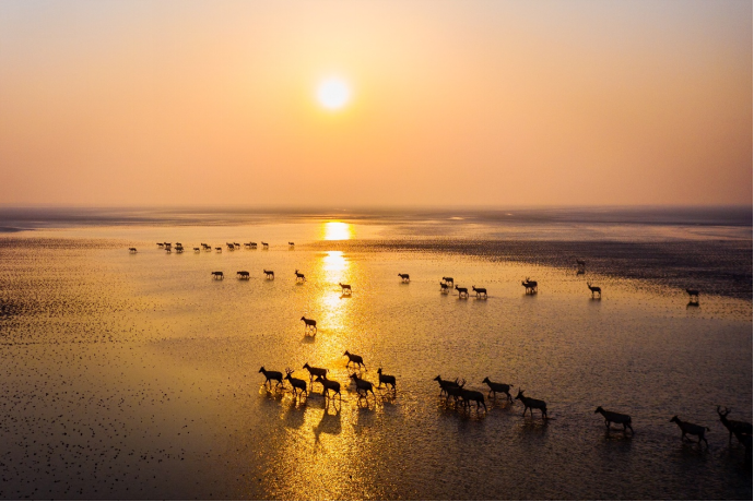 麋鹿的回归,让这片湿地的生态系统日趋完整。如今,保护区内鸟类种类达287种,比建区时增加了数十倍。其中包括9种国家一级保护动物、45种国家二级保护动物。随着中国黄(渤)海候鸟栖息地(第一期)入选《世界遗产名录》,这片湿地成了真正的世界级生态宝地。