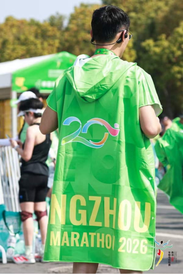 “特别贴心!长距离跑完后身体免疫力会下降,披风给了我们全身心的温暖,而且颜值也很高!”首次参加扬马的选手胡冬身穿完赛披风连连称赞。一件绿色保温披风,既是对绿色参赛行为的鼓励,也为跑者送去赛后温暖,让低碳理念与人文关怀相融,成为绿色扬马的暖心注脚。